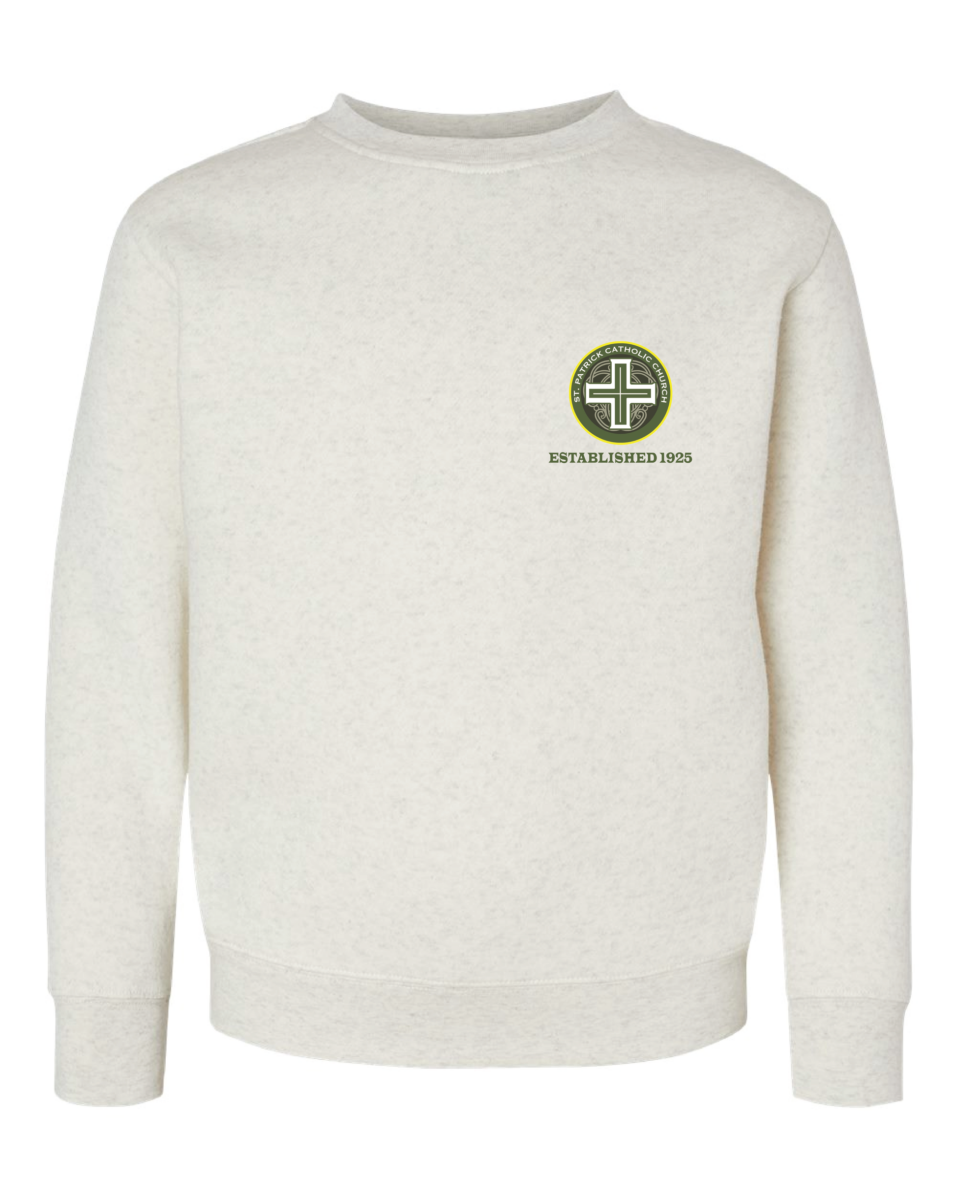 The image on the back of the garments is printed to match the green in the Saint Patrick's Catholic Church logo.
